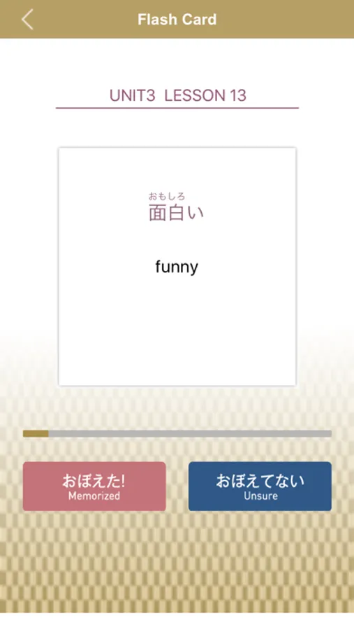 In the Manual mode, the cards are sorted into two piles: “Memorized” by swiping to the left, and “Unsure” by swiping to the right. The same operation can also be performed using the “Memorized” and “Unsure” buttons.