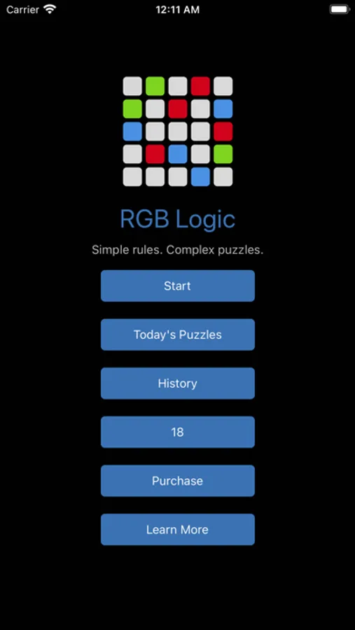 RGB logic is a bit like a colorful, simpler Sudoku (but it can actually be really tricky). Simply arrange the colors so there is one of each in every row and column and the arrangement matches the clues on the outside.