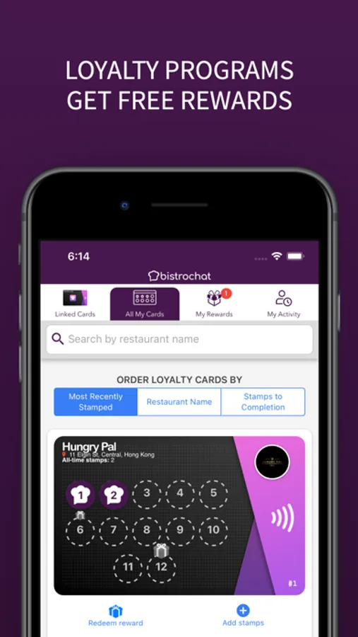 • Get stamps, rewards, cash back and discounts (free dinners, free bottles of wine, up to 800 HKD cash back). With Bistrochat, you get stamps when you dine out with your QR code or NFC Contactless loyalty card!
