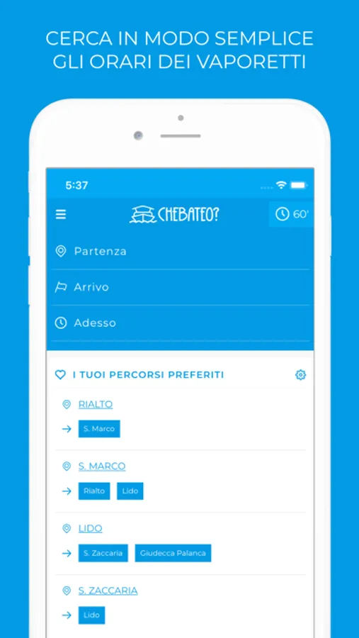 CheBateo? è l'APP semplice e veloce per vedere gli orari dei vaporetti ACTV a Venezia. Con CheBateo? potrai cercare gli orari al momento o in una data e ora futura, impostare le tue fermate e i tuoi percorsi preferiti, condividere via WhatsApp l'orario di un vaporetto.