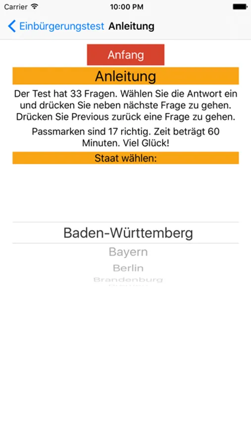 Vorbereitung Deutsch zu werden, indem sie Fragen von dieser App und das Bestehen der Einbürgerungstest zu üben