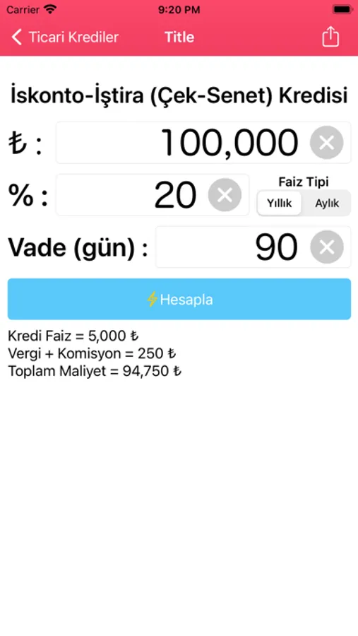 KOBİ Değer Kredisi Hesaplaması eklenmiştir.