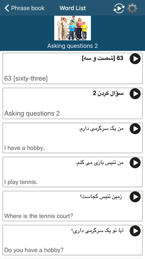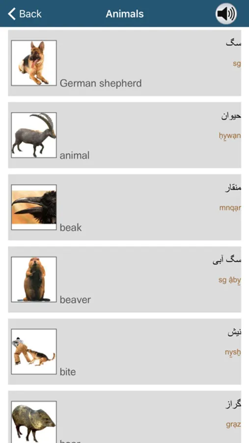The app provides you with basic Persian (Farsi) vocabulary.