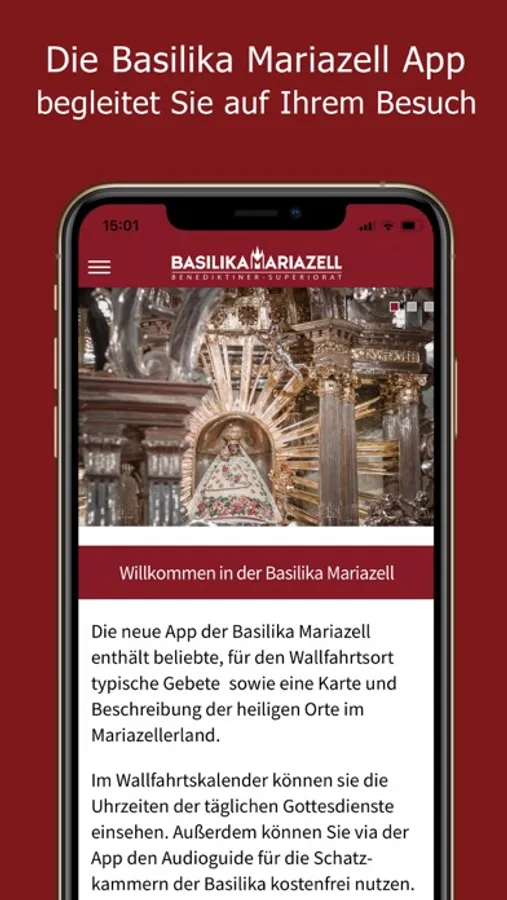 Die App der Mariazeller Basilika begleitet Sie auf Ihrem Besuch durch den Gnadenort.