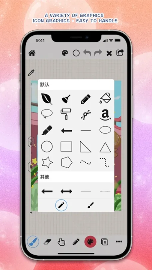 Pw Drawing Board provides 100+ brush effects, supports fully custom colors, eraser, eyedropper, add pictures, open the picture graffiti. Function supports layers, layer transformation. Support draw rectangles, ellipses, circles, lines, arrows, and other optional region; supports unlimited undo repeat the operation, support saving share and so on.