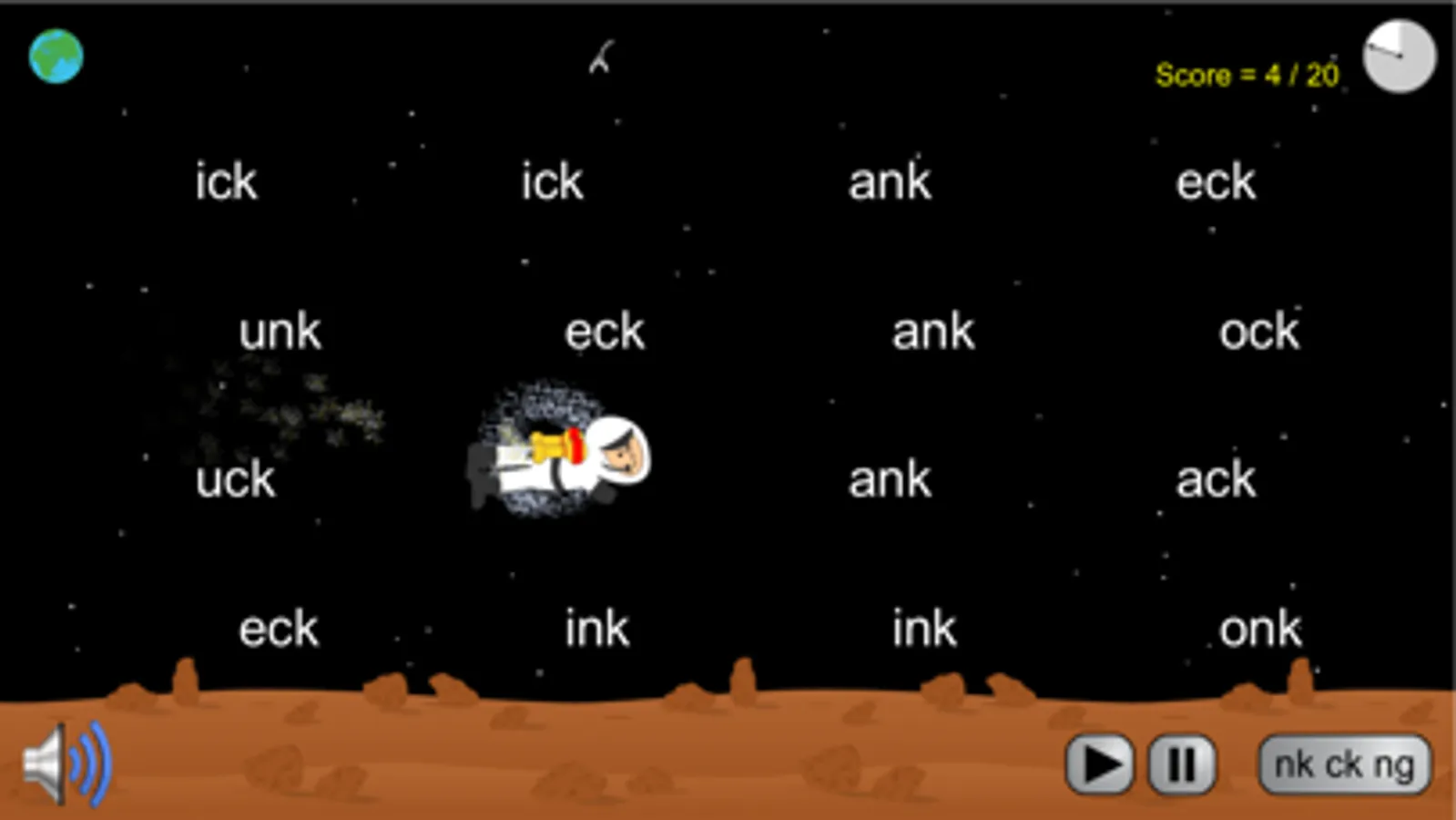 This game is targeted for those who struggle to read or may have dyslexia. It corresponds to the reading program, Blast Off to Reading! However, it is not necessary to be using that particular program.