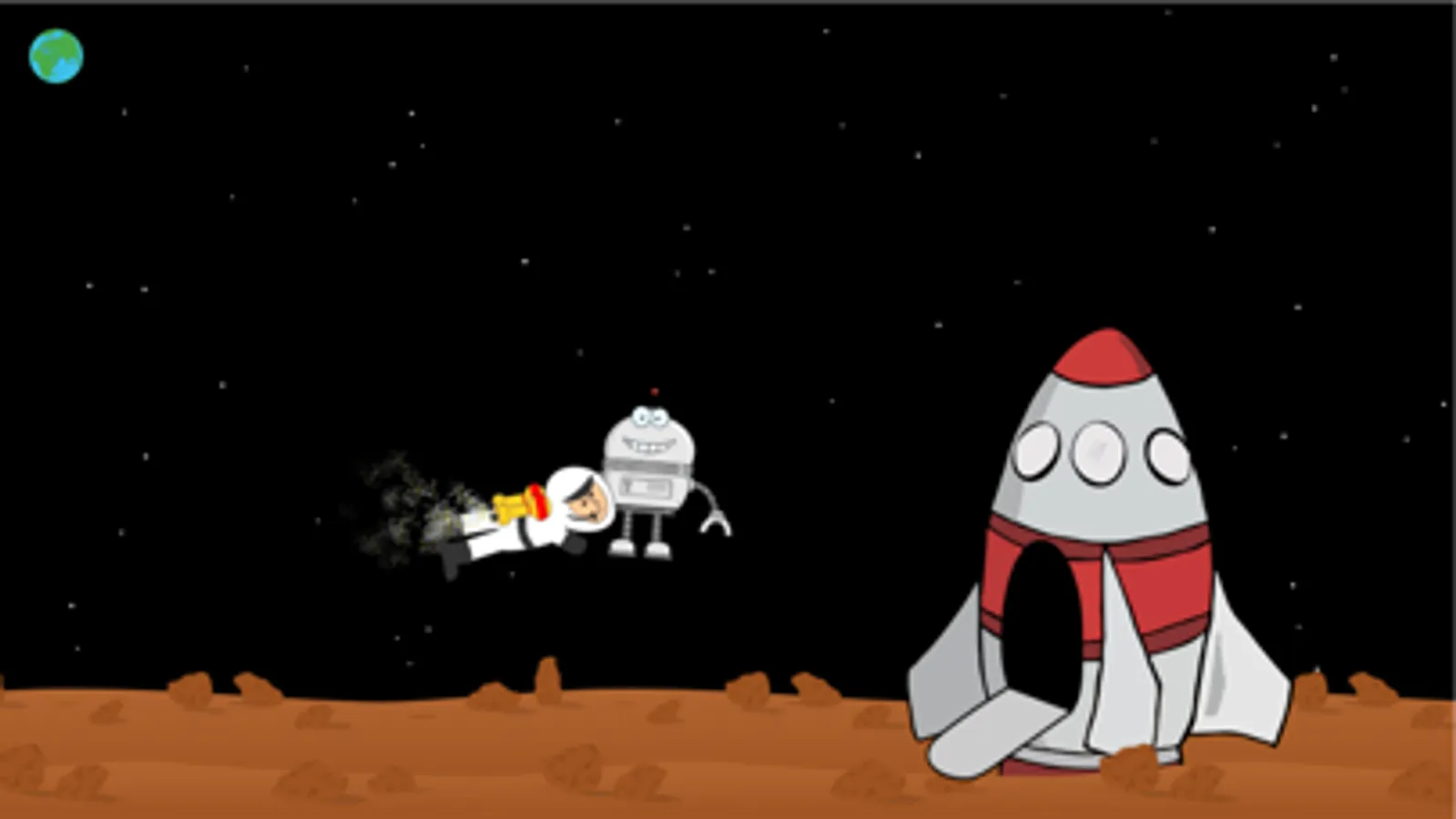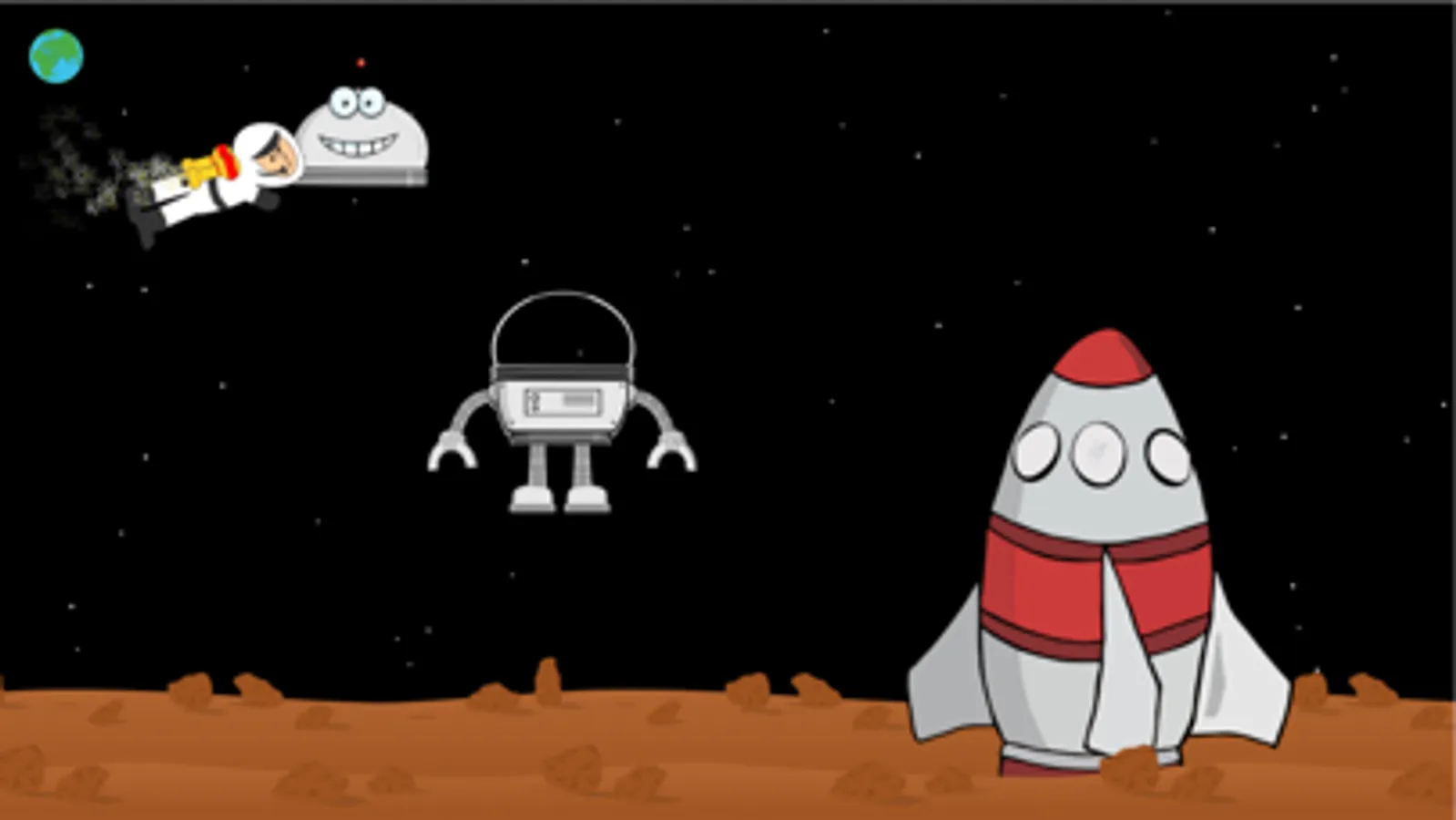 The child will identify the sounds in the words that are called out. To do this, the astronaut will collect the sounds along with the robot pieces, so that he can return to earth.