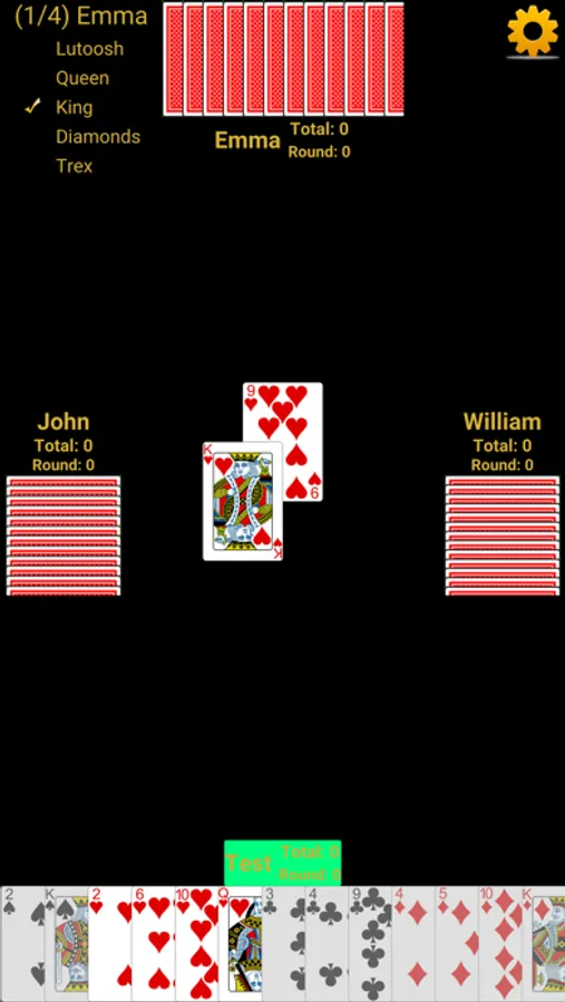 Each card of the diamond suit taken in a trick takes 10 points off the running total of the collecting player.