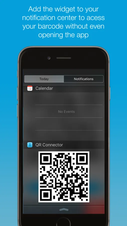 Add the QR Connector widget to your notification centre to allow easy access to your QR Contact Code. Allow others to scan your barcode without even opening the app!