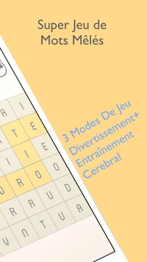 MODE CLASSIQUE: Chaque mot correct étend votre temps. Les lettres utilisées sont remplacées par des nouvelles lettres.