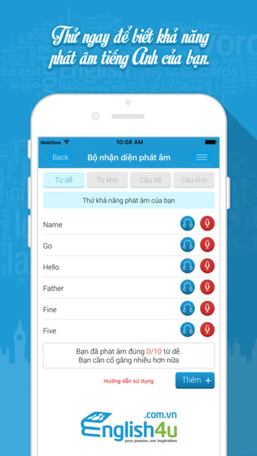 Để đăng ký tham gia các khóa học được tích hợp trong ứng dụng, bạn vui lòng liên hệ hotline 0936289098 / 0965842086 của english4u.com.vn. Xin cảm ơn!