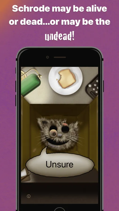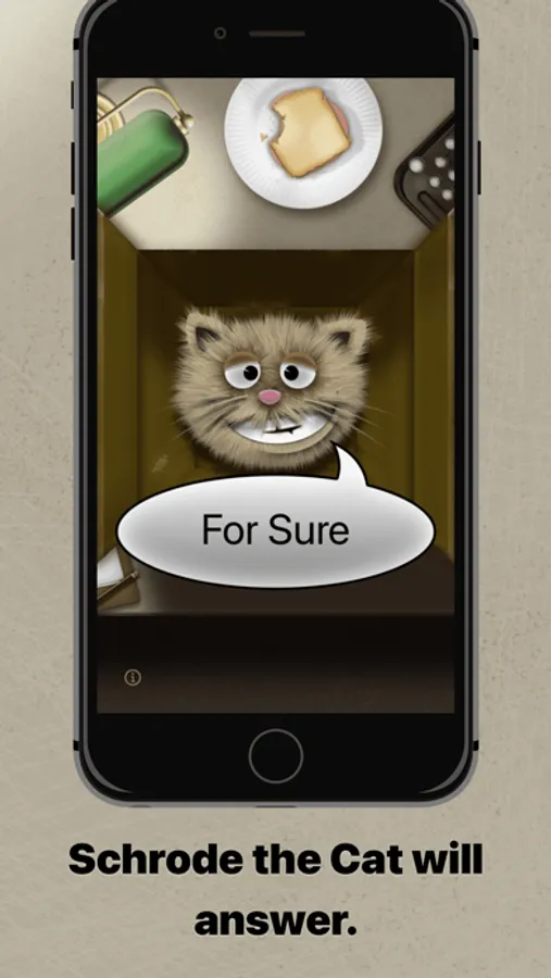 Ask Schrode your yes/no question, tap the box, and Schrode will answer. Is Schrode alive, dead, or perhaps the undead?! Use Schrode the Cat to make decisions in your life: