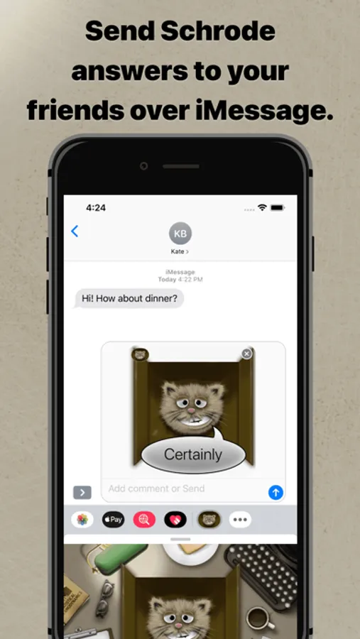 You can even use Schrode to answer your friend's questions in Messages. Just reply with Schrode for Messages. Let Schrode make the decision for you!