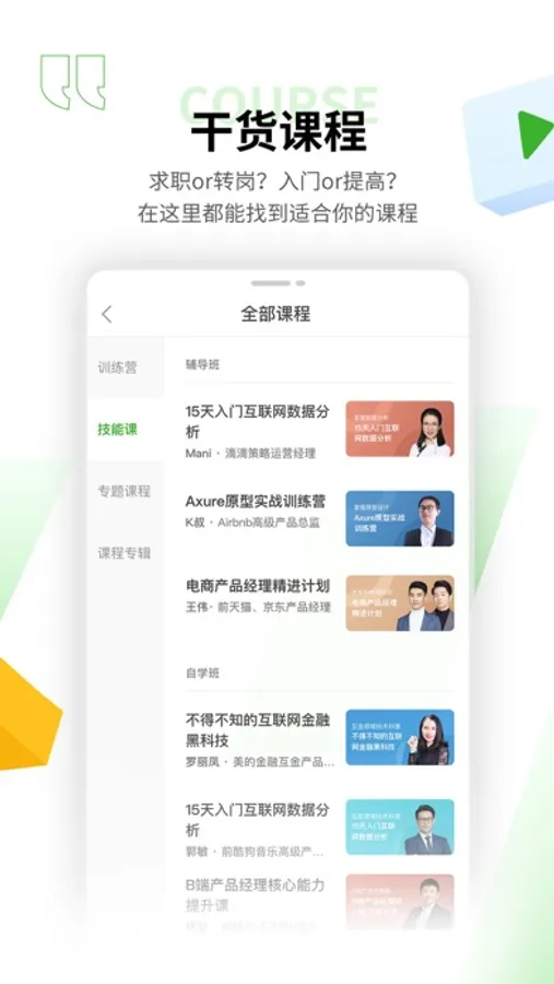 20+专项技能班,系统构建产品、运营知识体系