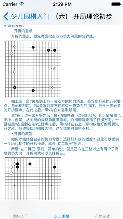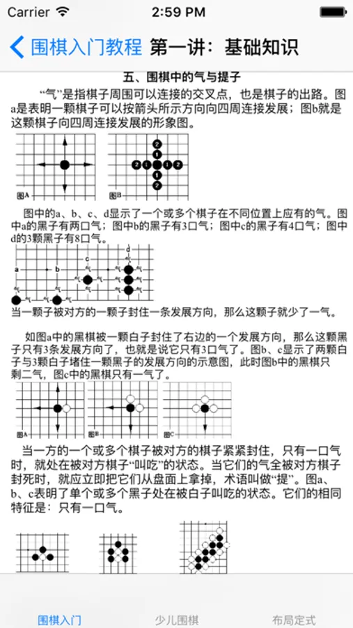 内含全面的围棋相关知识,是围棋入门的好应用,包括了: