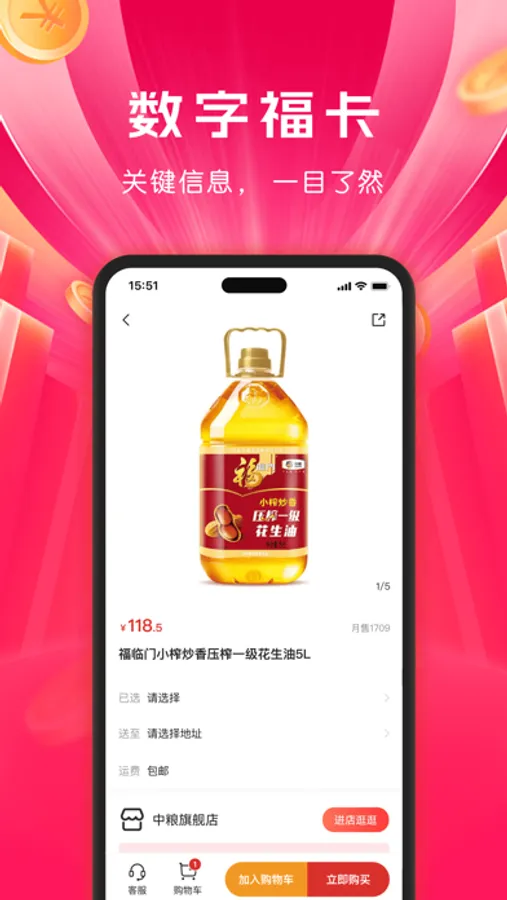 数字福卡是专为数字福卡用户推出的满足其生活消费和线上购物需求的软件,具有商品搜索、浏览、购买、支付等功能。成为数字福卡用户方便快捷的生活消费平台。