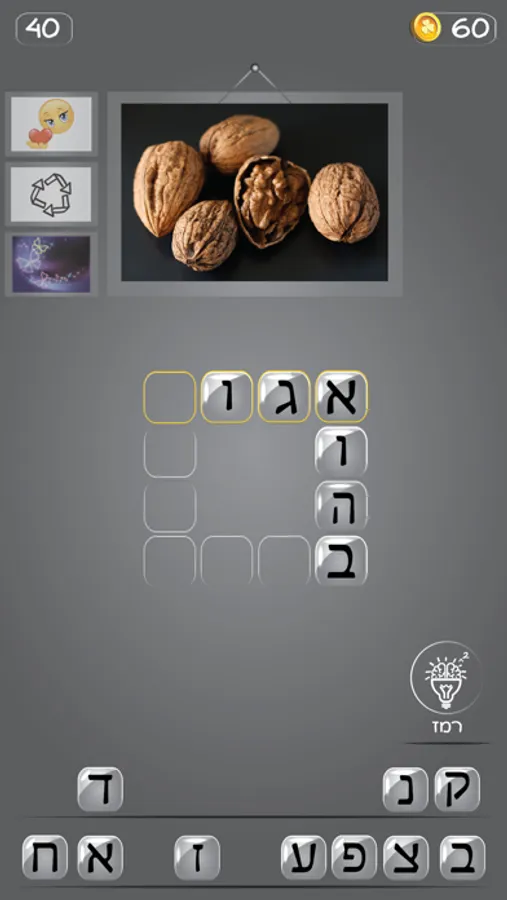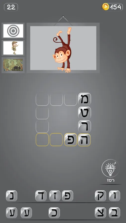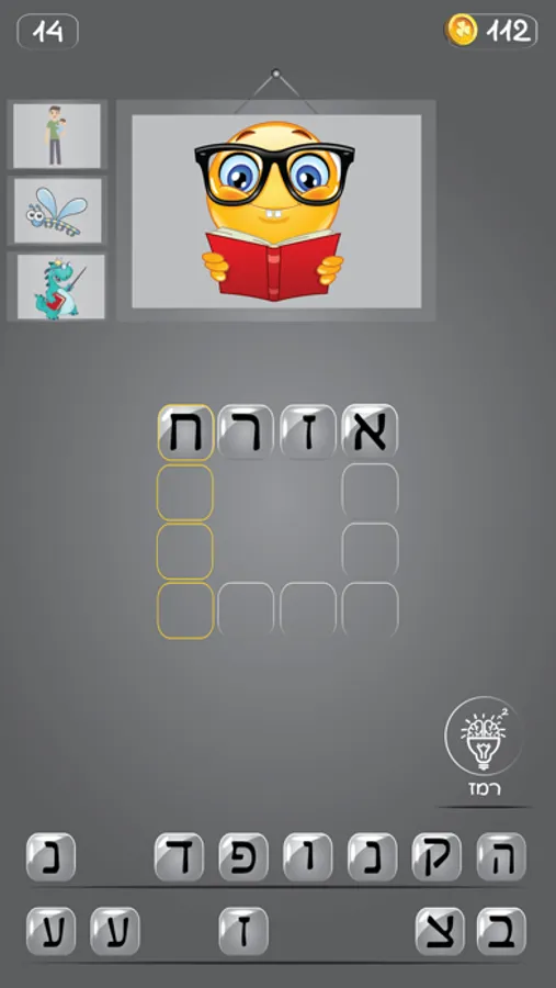 יש לזהות מילה לפי תמונה וכל מילה שמצליחים לזהות, חושפת אות למילה אחרת.