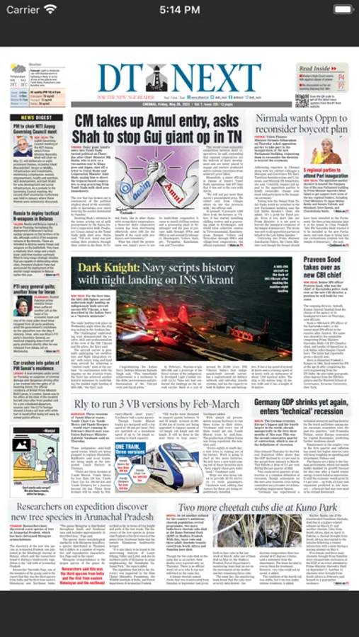 The highly interactive new DT Next e-paper and app is a full-featured print replica with digital elements intact. The easy-to-use interface lets you flip leisurely through the pages like a newspaper, search and share articles easily.