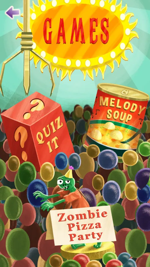 • Games: 2-3 games to reinforce key concepts in game-style play. Games are called “Melody Soup,” “Zombie Pizza Party,” and “Quiz It.”