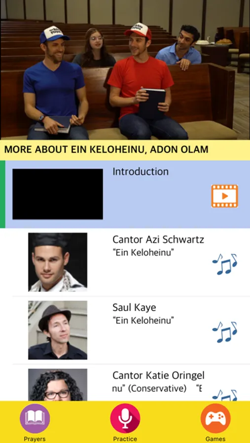 • Music and Videos: A traditional melody plus 3-4 interpretations of the prayer. Music in the series comes from more than 50 of today’s top Jewish musicians. Videos explain the meaning of the prayer, hosted by Jewish educators Noah Aronson, Eliana Light, and the Bible Players.