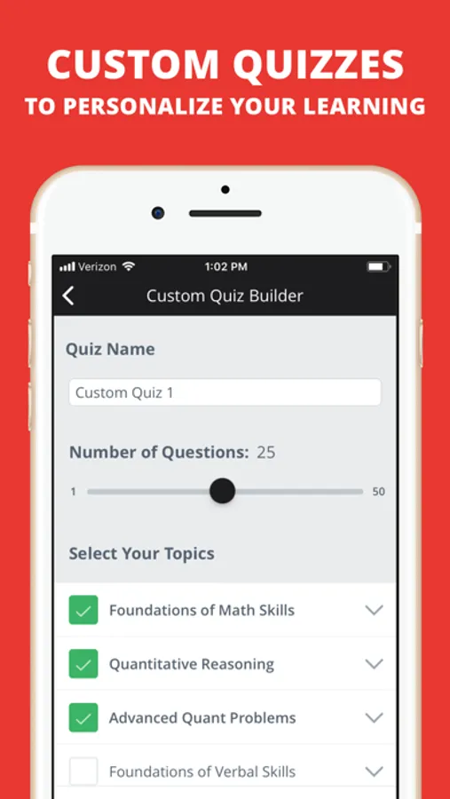 Our study prep app will provide you with more than 1,000+ study practice questions, 500+ most common vocabulary words, 120+ tough practice quiz questions, and GRE Math practices!