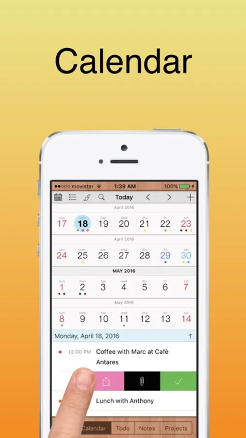 - Access all calendars registered in your device: Google, Apple, Exchange, Yahoo, AOL and custom CalDAV.