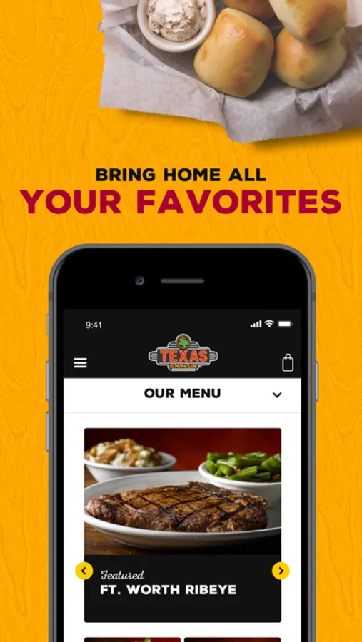 You love our Hand-Cut Steaks, Made-From-Scratch Sides, Fall-Off-The-Bone Ribs, and Fresh-Baked Bread! Our mobile app makes getting your Texas Roadhouse favorites faster and easier from finding locations and joining the Waitlist, to browsing our menu and ordering TO-GO.
