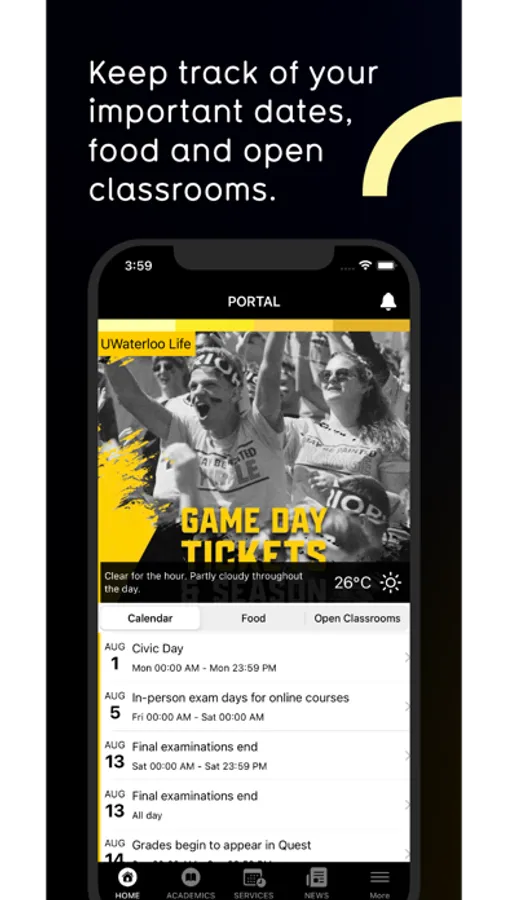 • Calendar – all of your personalized and campus info in one place