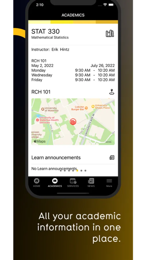 • Classes – find detailed information about your class times, locations, professors