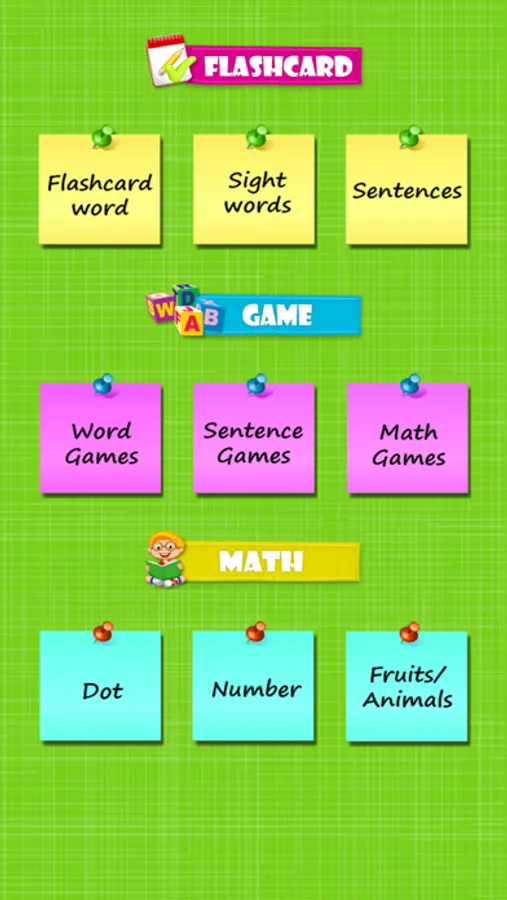 Firstly, your children have a lot of choices in learning by playing. Your kids never get rid of that categories games, in Smart Learning application your children are freely in choosing the type of game they liked. Moreover an important part in this app is included 18 games in total: Flashcard Word Games, Sentences Games and Math Games can make children learn when playing.