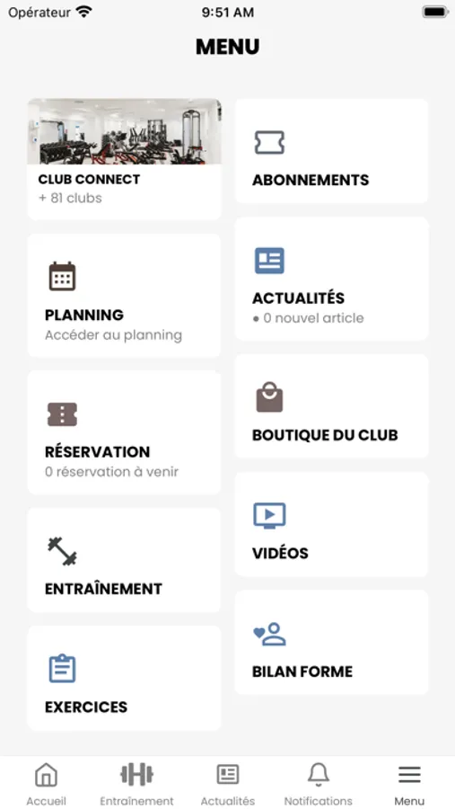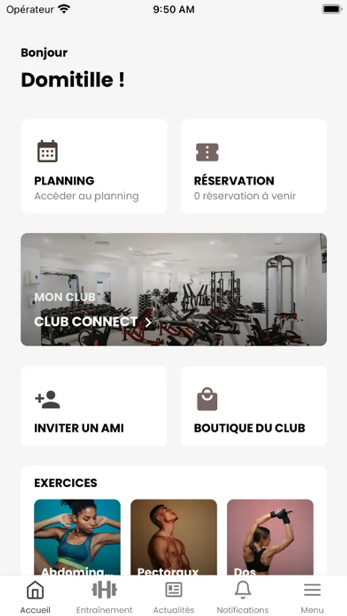 La première fois que vous ouvrez l'application, cliquez sur le club de fitness que vous fréquentez.