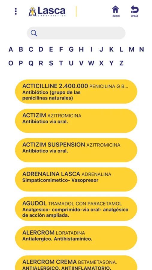 Encuentre la más completa Información con más de 400 presentaciones de productos, de laboratorios Lasca y División Científica. Para facilitar la búsqueda, se le ha dotado de criterios interactivos y amigables, tanto para el uso de profesionales de la salud, cómo el público en general. Es posible realizar búsquedas por los siguientes criterios: Laboratorios; Productos; Principios activos; Acciones terapéuticas; Sin gluten; Sin azúcar. Además, la aplicación brinda un práctico modo de búsqueda por líneas terapéuticas como: Odontología; Neurología; Cardiología; Oftalmología. Laboratorios Lasca y División Científica advierten, que la prescripción de medicamentos es un acto profesional, reservado a médicos habilitados. Laboratorios Lasca y división Científica, no se hacen responsables por el uso indebido de la información contenida en esta aplicación.