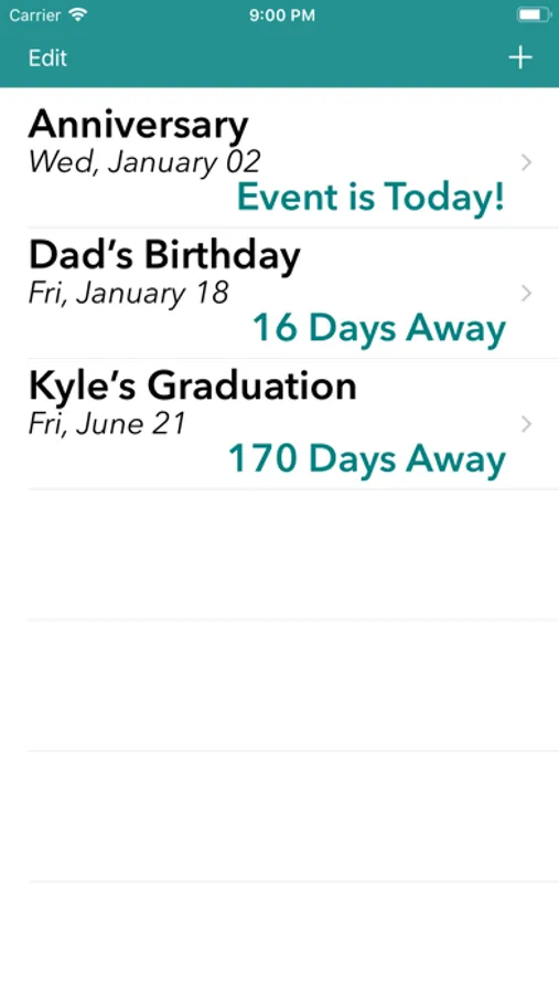 Tired of remembering all of your friends and family's birthdays? Or, are you tired of forgetting to mail a card or buy them a present? Well, this is the app for you! This app is what everyone needs, from kids to the elderly. All you do is add the birthdays of people you know. The extremely easy configuration of the birthdays have been tested on many age groups, giving you the best and easiest to use. Once many birthdays are added, the app organizes them from the nearest one coming up to the farthest one away, so you know who you should be prepared for next. Finally, the app send a notification every day you set, allowing reminders of the birthday as you approach the date. All this with a simple user interface, makes the birthday app everybody needs.