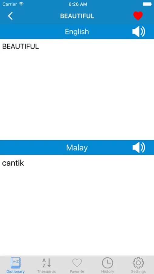 For Malaysians speakers who want to learn English and know about the meanings of English words, the English to Malay Dictionary brings you a database with which you can almost search every English word in Malay. The app comes with two major features, the details of which are as follows:
