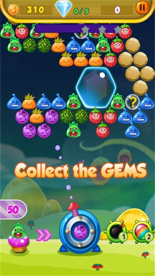 3.Fresh game-play,collect the stars on top or get the jewels trapped in bubbles
