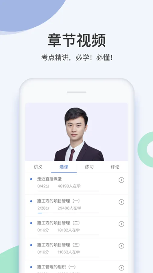 下载过几款软件,最中意的还是万题库,讲义和视频真是太好了,真正的建造师移动课堂,没有之一