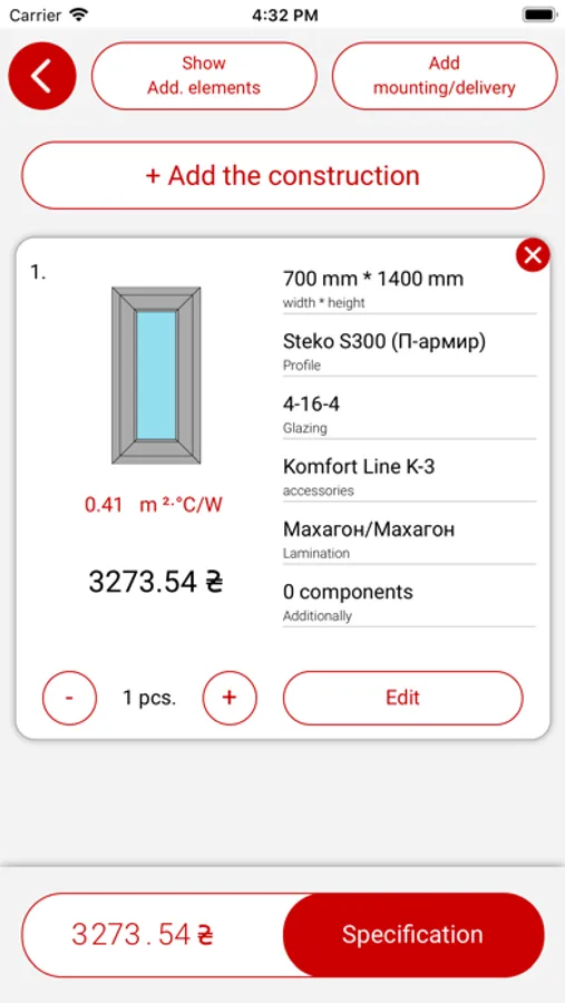 - Наличие всех необходимых инструментов для построения любой оконной конструкции (добавление створок, импостов, изменение цвета и многое другое);