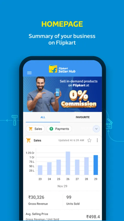 Sell on Flipkart at 0% commission(in certain verticals), explore selling in multiple verticals, gain more profit and expand your reach to a new set of customers - all at a reduced cost of doing business.