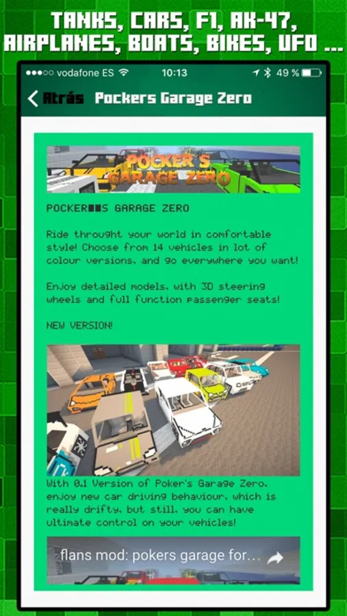 It is the only app in the AppStore with vehicles and weapons for your Minecraft.