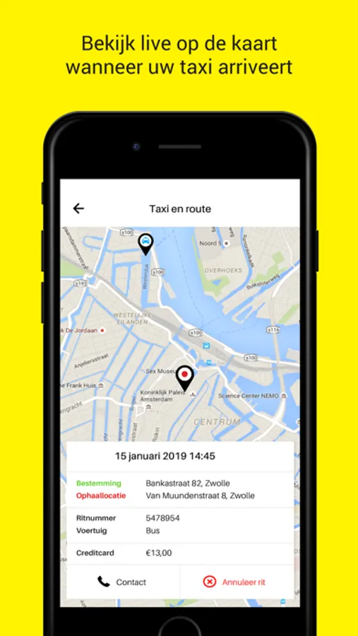 Order a taxi with one tap. Your can set your pick-up location with a single tap, or Google search for an address manually. By optionally setting a drop-off point, you get a reliable quote for your trip. Follow your approaching taxi on the map. So no more needless waiting. Change of plans? You can easily manage your bookings and reservations in the app and view past trips as well.