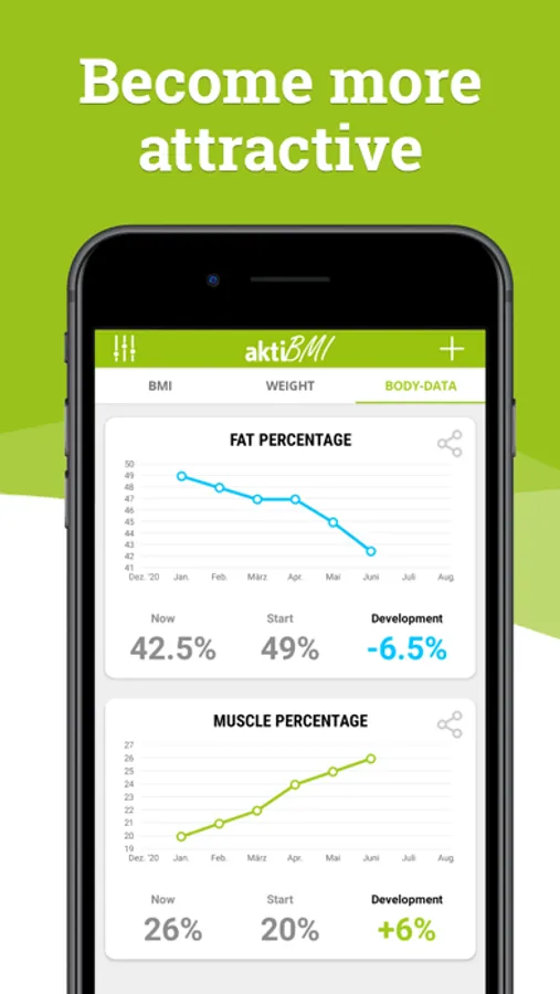 For keeping your body at a glance, aktiBMI is the right choice for you! Our App provides you with detailed analysis’ of your physical constitution and the changes in your weight