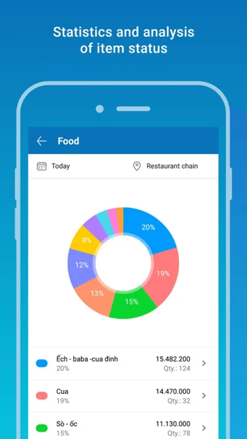 CUKCUK – For Manager Application provides key information on the business operation of the restaurant: