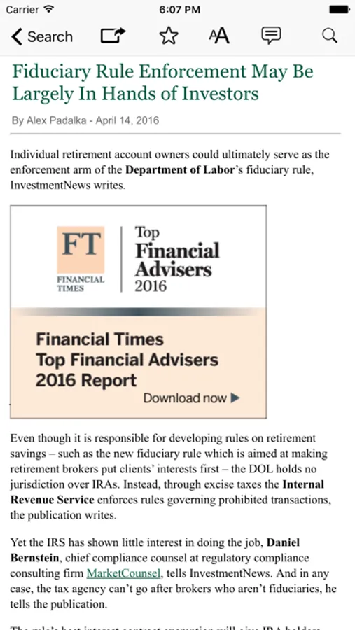 Financial Advisor IQ (FA-IQ), a Financial Times service, is the premier news source for financial advisors. FA-IQ’s content is “all about the client” and helps financial advisors to build and manage their practices. The FA-IQ app is designed to help busy advisors get the latest industry news while on-the-go.