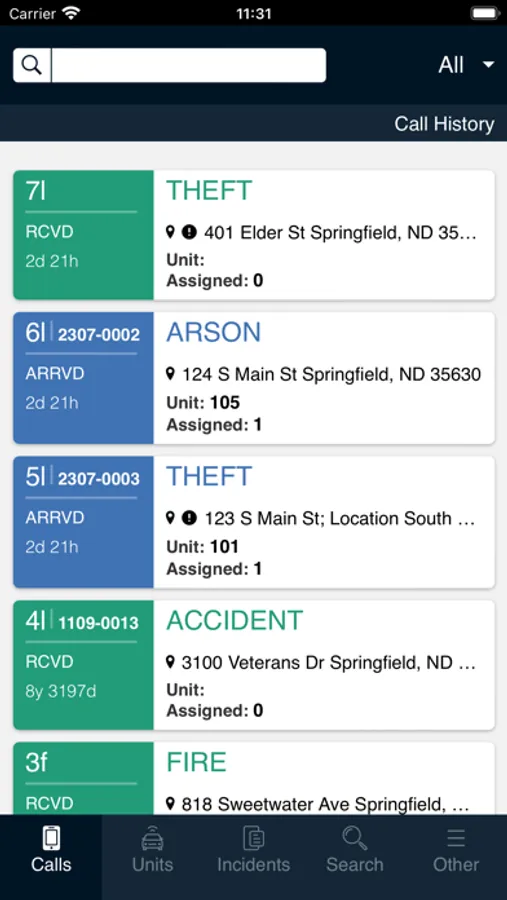 The user-friendly design makes it easy for personnel to quickly learn how to navigate the app. Flex Touch allows personnel to access real-time call updates by viewing all active calls, call nature, and any assigned units. Each user can customize the list of calls and units within the jurisdiction. Calls are organized by unit status, providing a quick way to see whether officers have arrived on the scene and if a unit’s timer has expired. When a user has been assigned to a call, that information is displayed prominently.