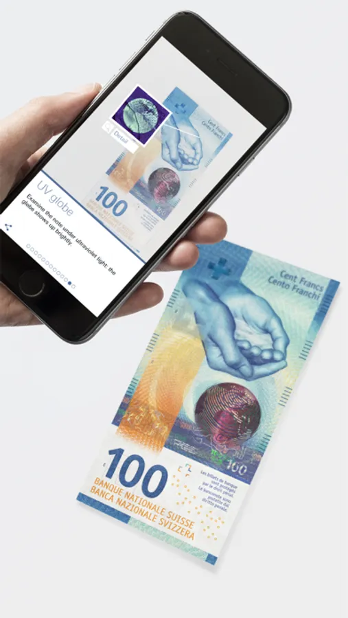 Open the app, position the camera over an uncreased 10-franc, 20-franc, 50-franc, 100-franc, 200-franc or 1000-franc note and experience a new take on a Swiss original.