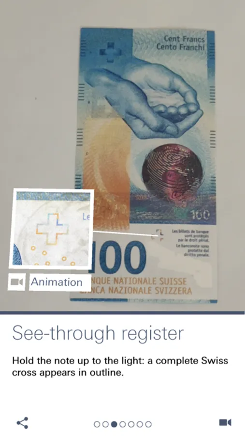 With this app, you can discover the 10-franc, 20-franc, 50-franc, 100-franc, 200-franc and 1000-franc notes from Switzerland’s new banknote series. Explore the design and the easily verifiable security features.