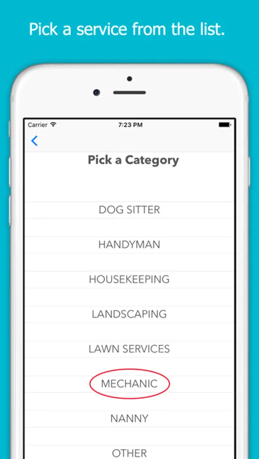 Choose from a variety of freelancers from nanny, mechanic, or dog sitter. Know when they are available (green =available, red= unavailable) and how close they are to you.