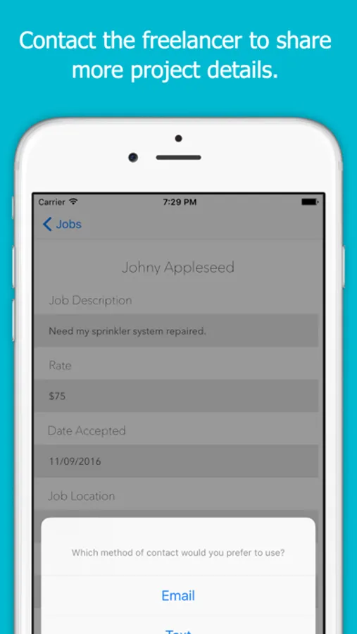 Simply select the freelancer that best fits your needs and budget. Send them a project detail request and wait for them to accept. Upon accepting you will be connected with the freelancer either by text or email.