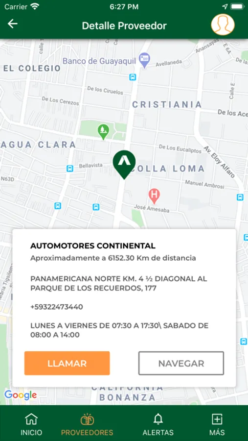 En la sección de asistencia vehicular, puedes notificar un accidente para obtener asistencia inmediata y acceder a un mapa con geo-localización que determinará tu ubicación y te señalará el taller más cercano.