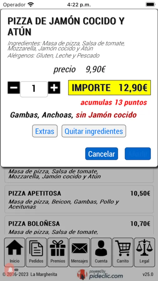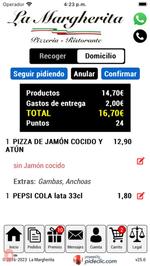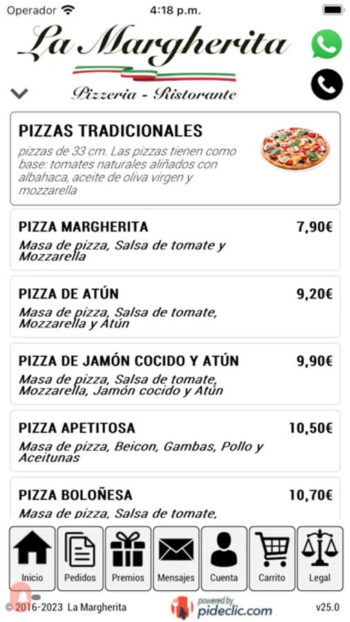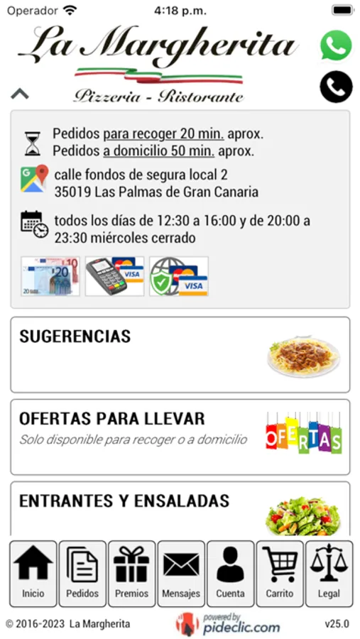 App de la Pizzería La Margherita en 7 Palmas, Las Palmas de Gran Canaria.
